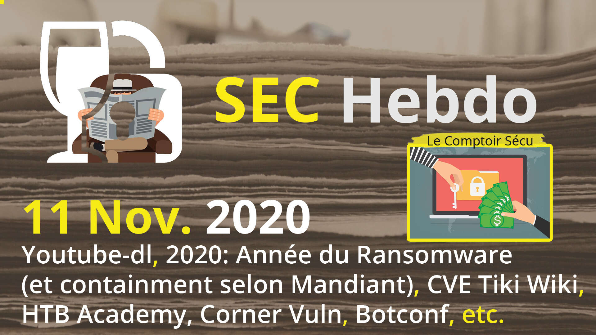 YouTube-dl, 2020 : année du ransomware (et containment par Mandiant), CVE Tiki Wiki, HTB Academy, CornerVuln, Botconf, GreHack, etc.