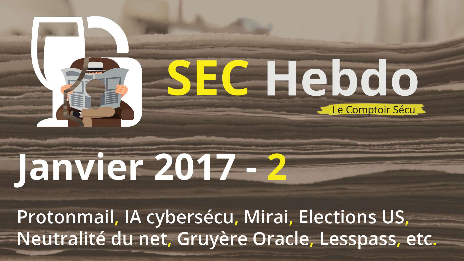 Protonmail, IA cybersécu, Mirai, Elections US, Neutralité du net, Gruyère Oracle, Lesspass, etc.