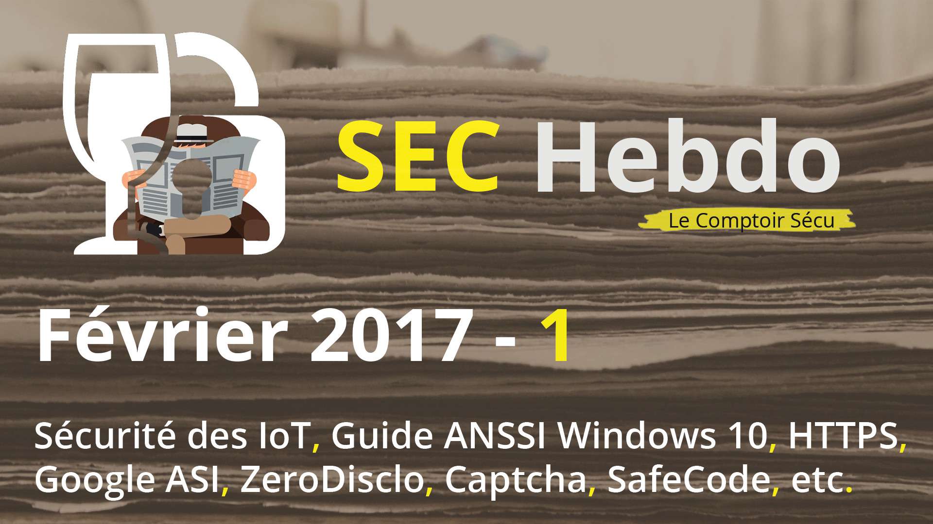 Sécurité des IoT, Guide ANSSI Windows 10, HTTPS, Google ASI, ZeroDisclo, Captcha, SafeCode, etc.