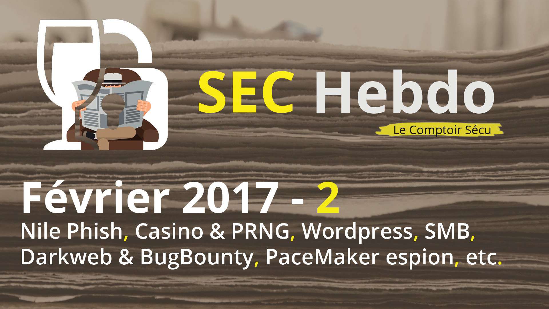 Nile Phish, Casino & PRNG, WordPress, SMB, Darkweb & BugBounty, PaceMaker espion, etc.