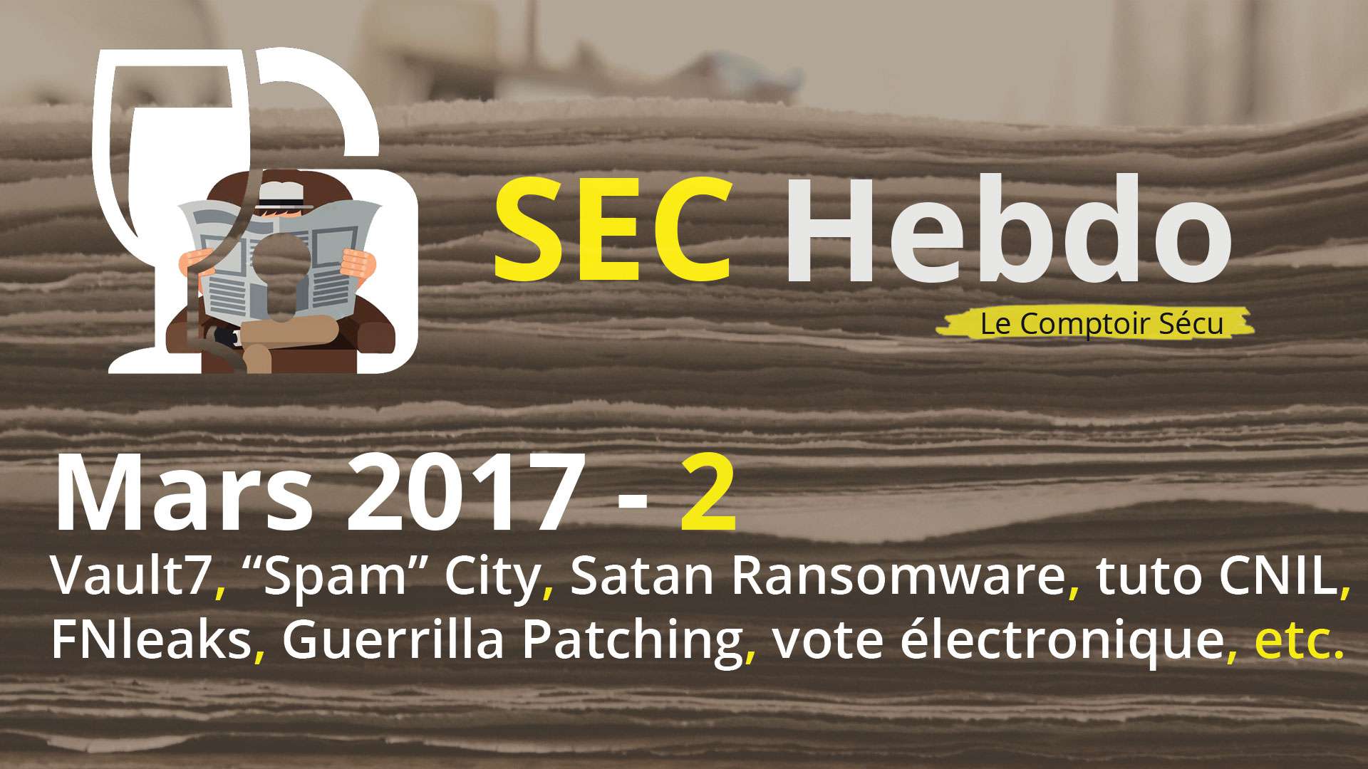 Vault7, 'Spam' City, Satan Ransomware, FNLeaks, Guerilla Paching, vote électronique, etc.