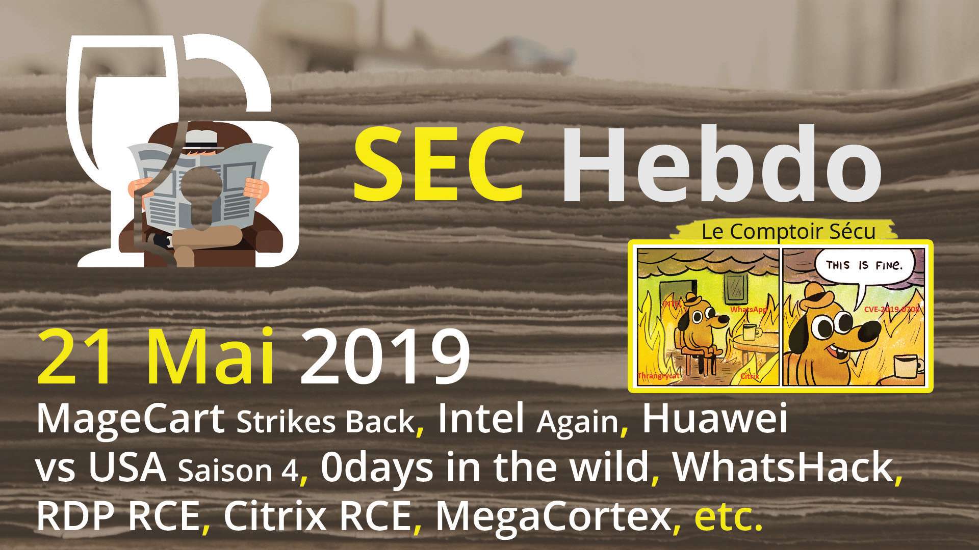 MageCart strikes back, Intel again, Huawei vs USA saison 4, 0days in the wild, WhatsHack, RDP RCE, Citrix RCE, MegaCortex, etc.