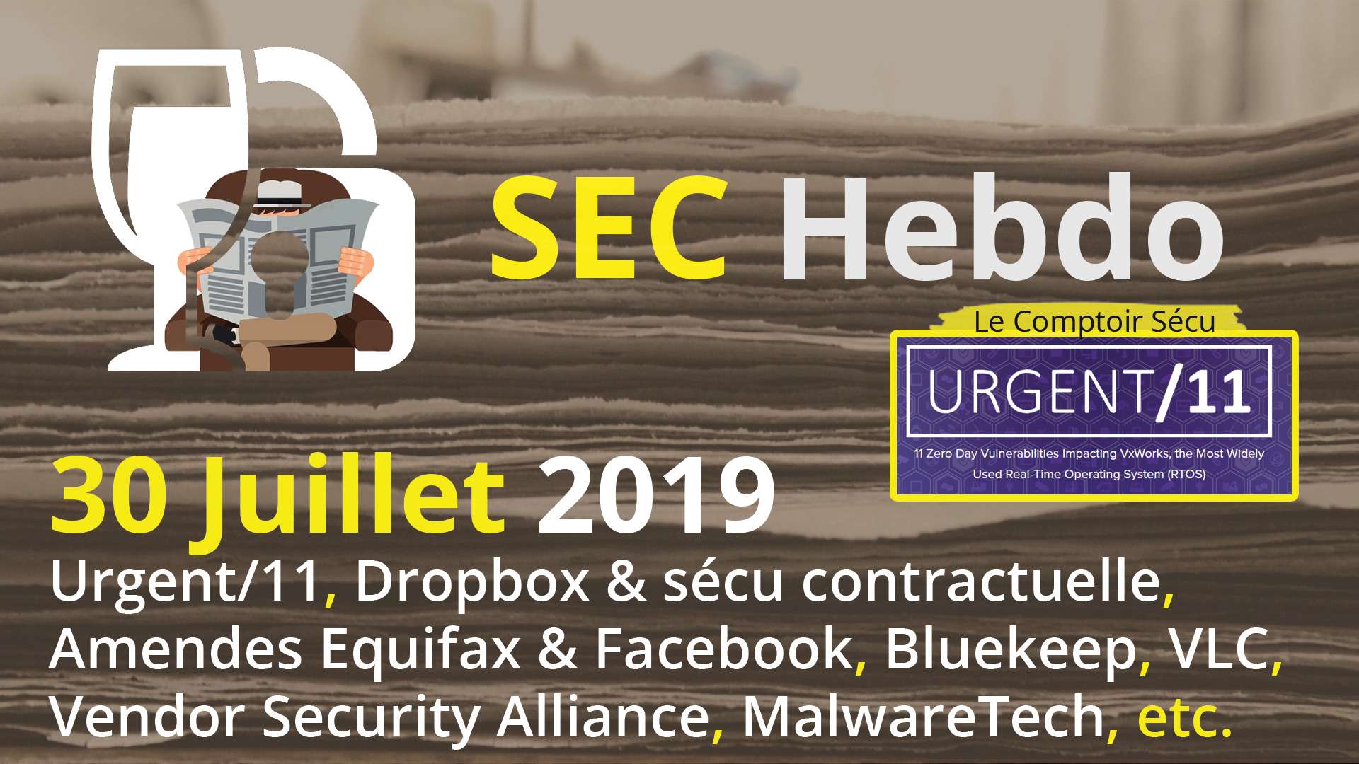 Urgent/11, Dropbox & sécu contractuelle, Amendes Equifax & Facebook, Bluekeep, VLC, Vendor Security Alliance, MalwareTech, etc.