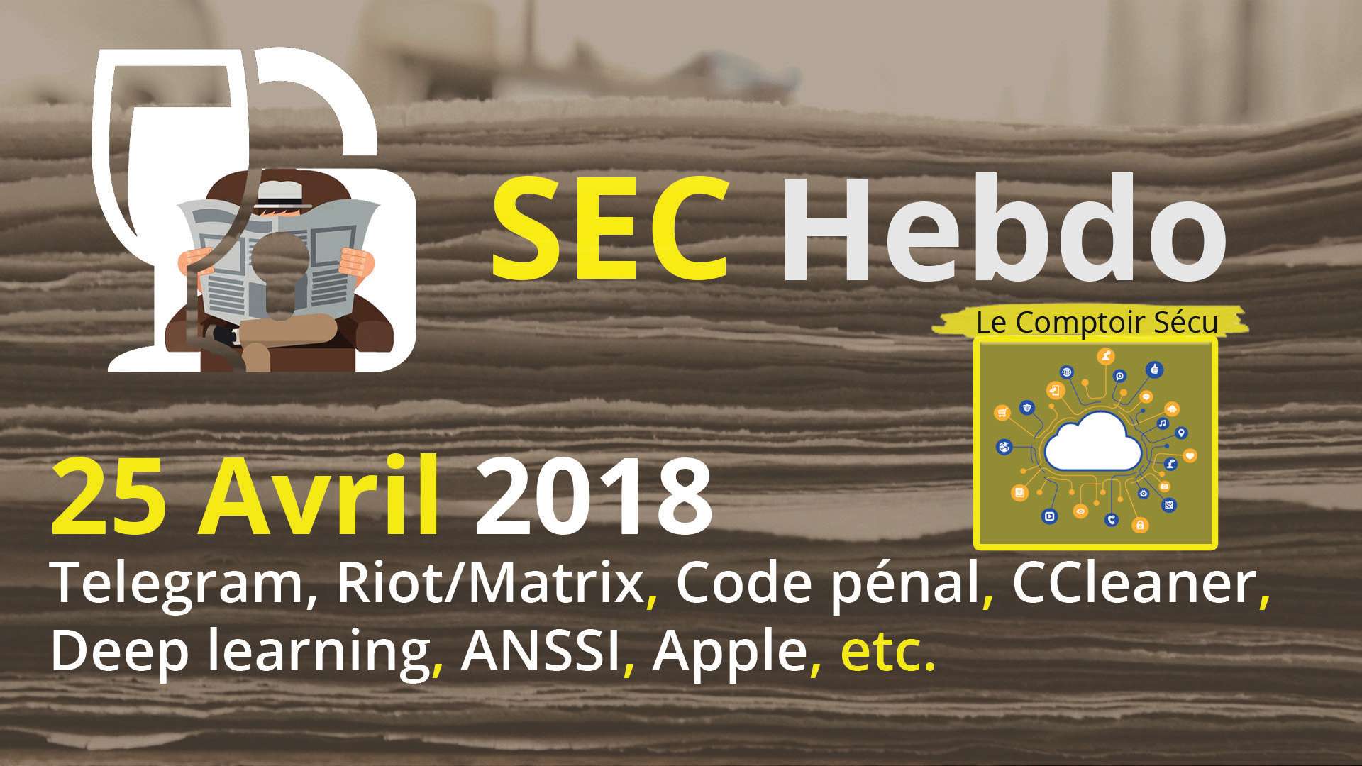 Telegram, Riot/Matrix, passphrase et code pénal, CCleaner, deep learning, ANSSI, Apple