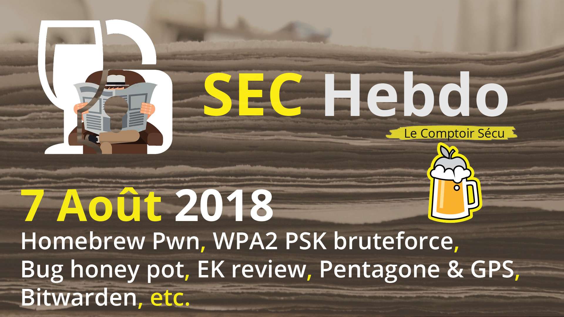 Homebrew Pwn, WPA PSK bruteforce, bug honey pot, EK review, Pentagone & GPS, Bitwarden etc.